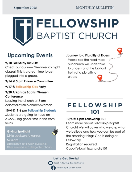 At Fellowship, we believe the church is more than a place—it’s the body of believers, united in Christ. Stay informed about worship, events, and opportunities to grow and serve together. Download this week’s bulletin below and join in the life of our church family!